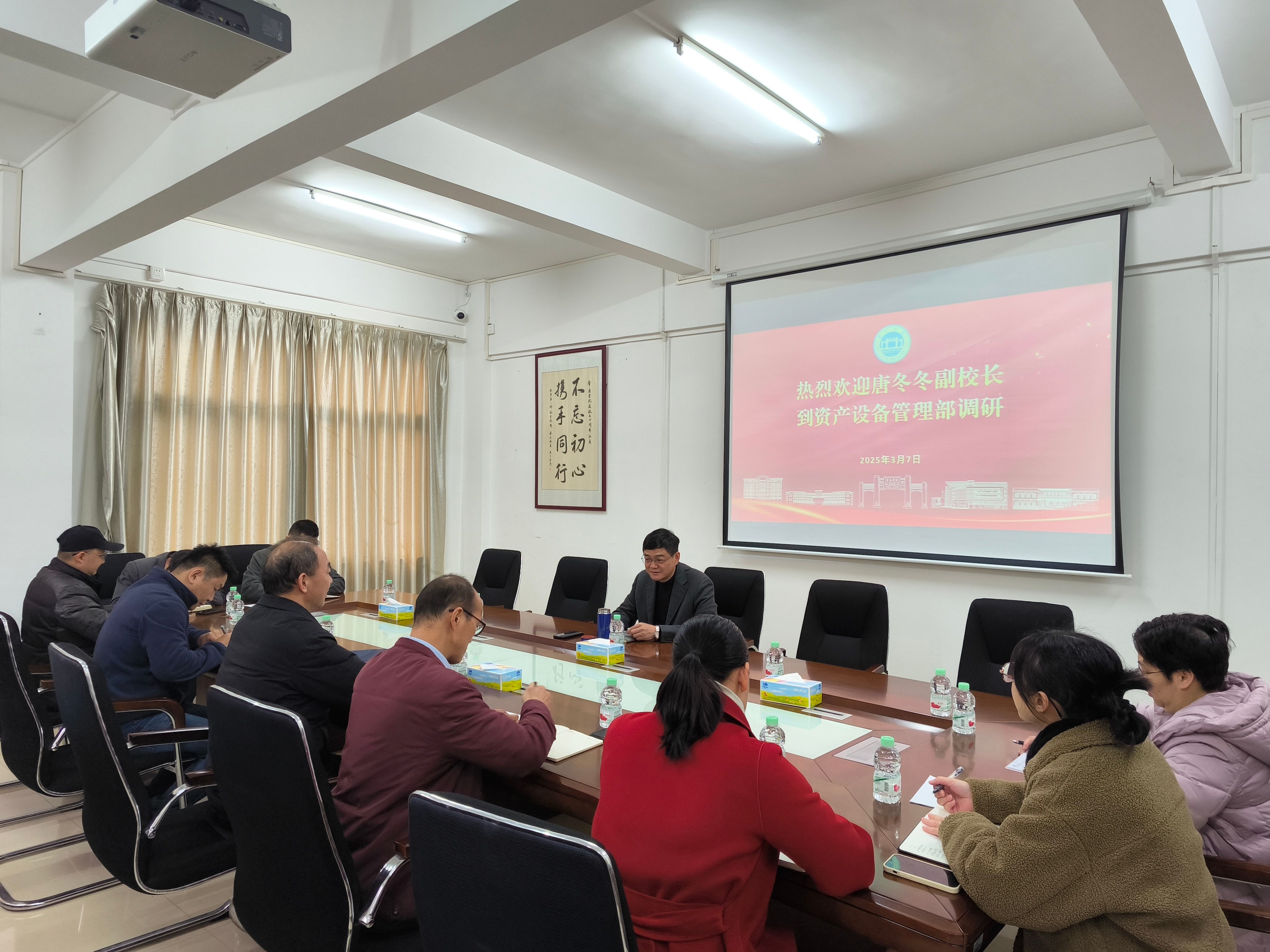 为全面了解和指导学校资产管理工作,3月7日,副校长唐冬冬深入资产设备管理部开展专题调研,听取部门工作汇报并提出指导意见。资产设备管理部部长苏文英及部门全体成员参加调研会议。