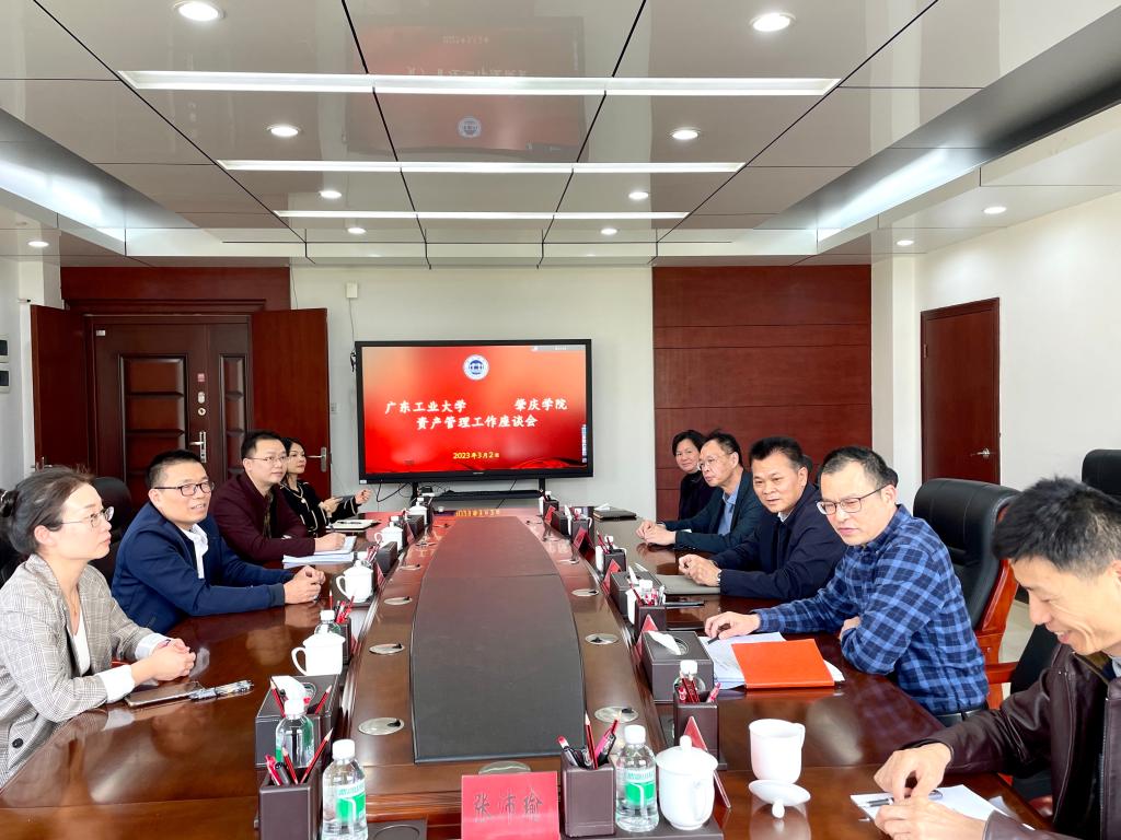 3月2日,广东工业大学国有资产管理办公室主任洪伟强一行4人来到167net必赢入口交流资产管理工作。广东工业大学帮扶工作队队长刘怡军、资产管理处处长毛致光、副处长赵金等参加座谈交流。
