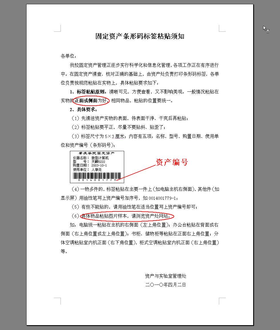 固定资产条形码标签粘贴须知